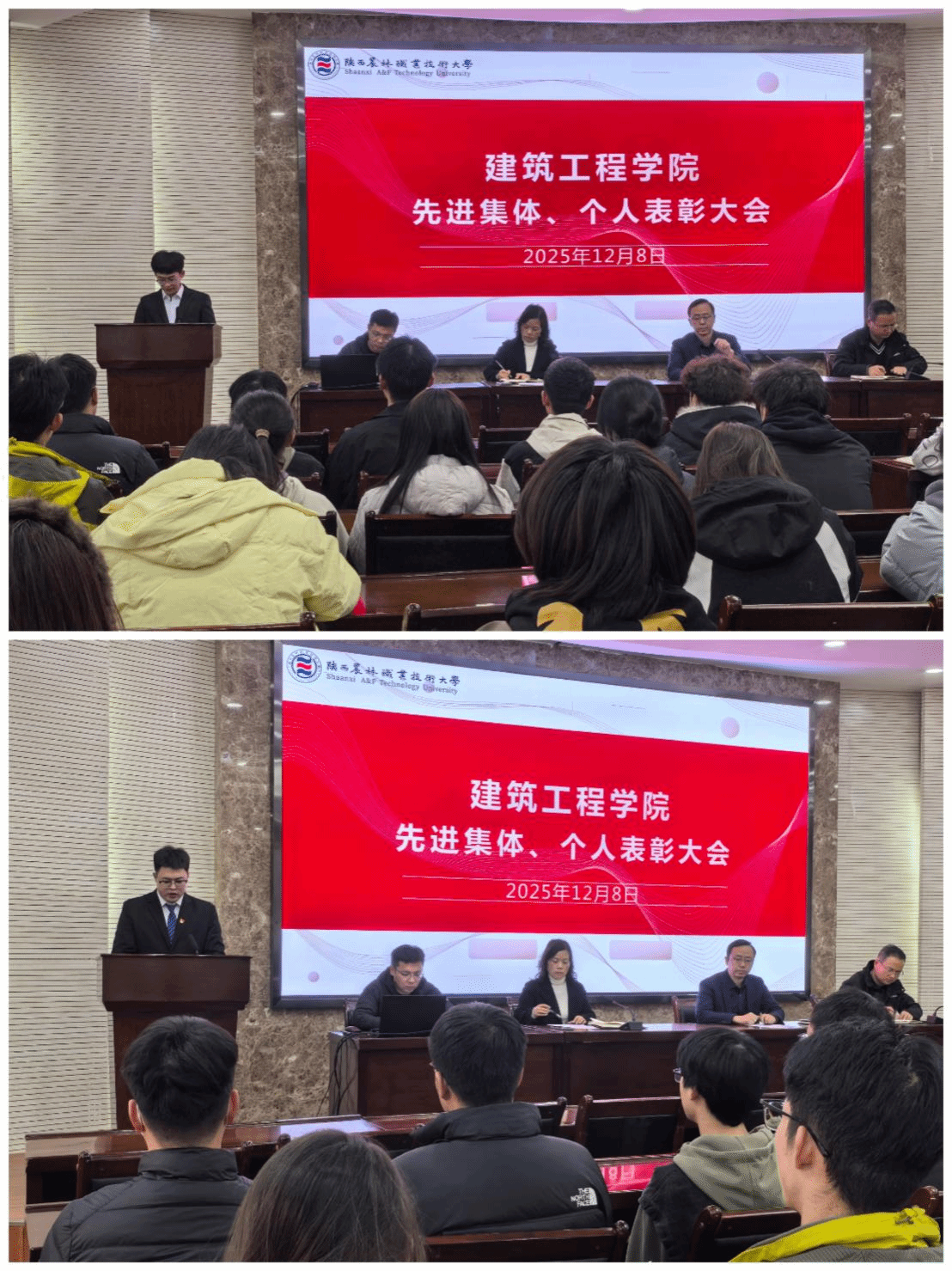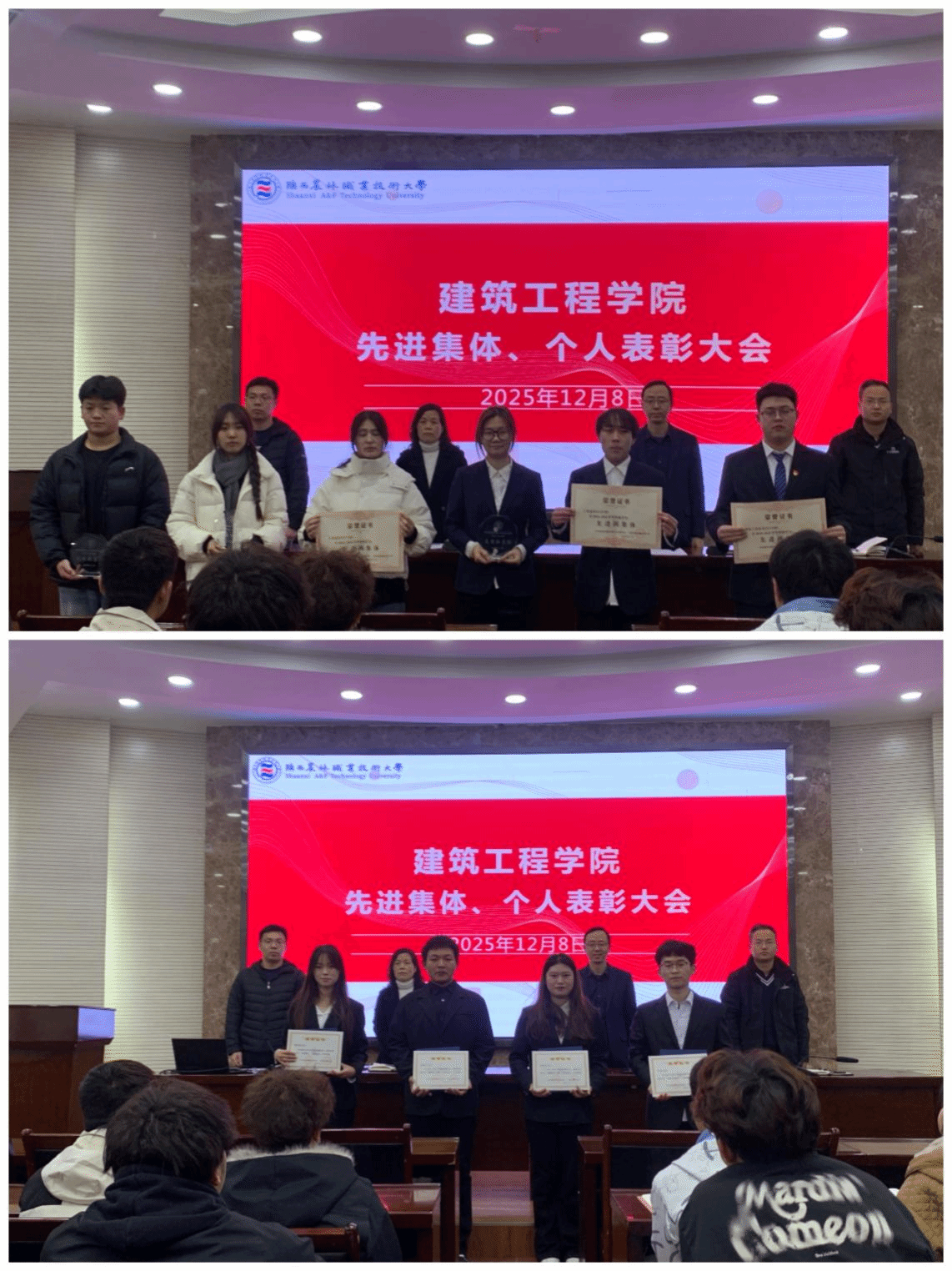 王琦宣读《2024-2025学年度关于表彰建筑工程学院先进集体、先进个人的决定》,明确了本次表彰的先进班集体、优秀学生等荣誉称号的评选标准与表彰意义,对获奖集体和个人在过去一学年的突出表现给予高度肯定。随后,学院领导班子成员为获奖集体和个人依次颁发奖杯与荣誉证书,并与大家合影留念。