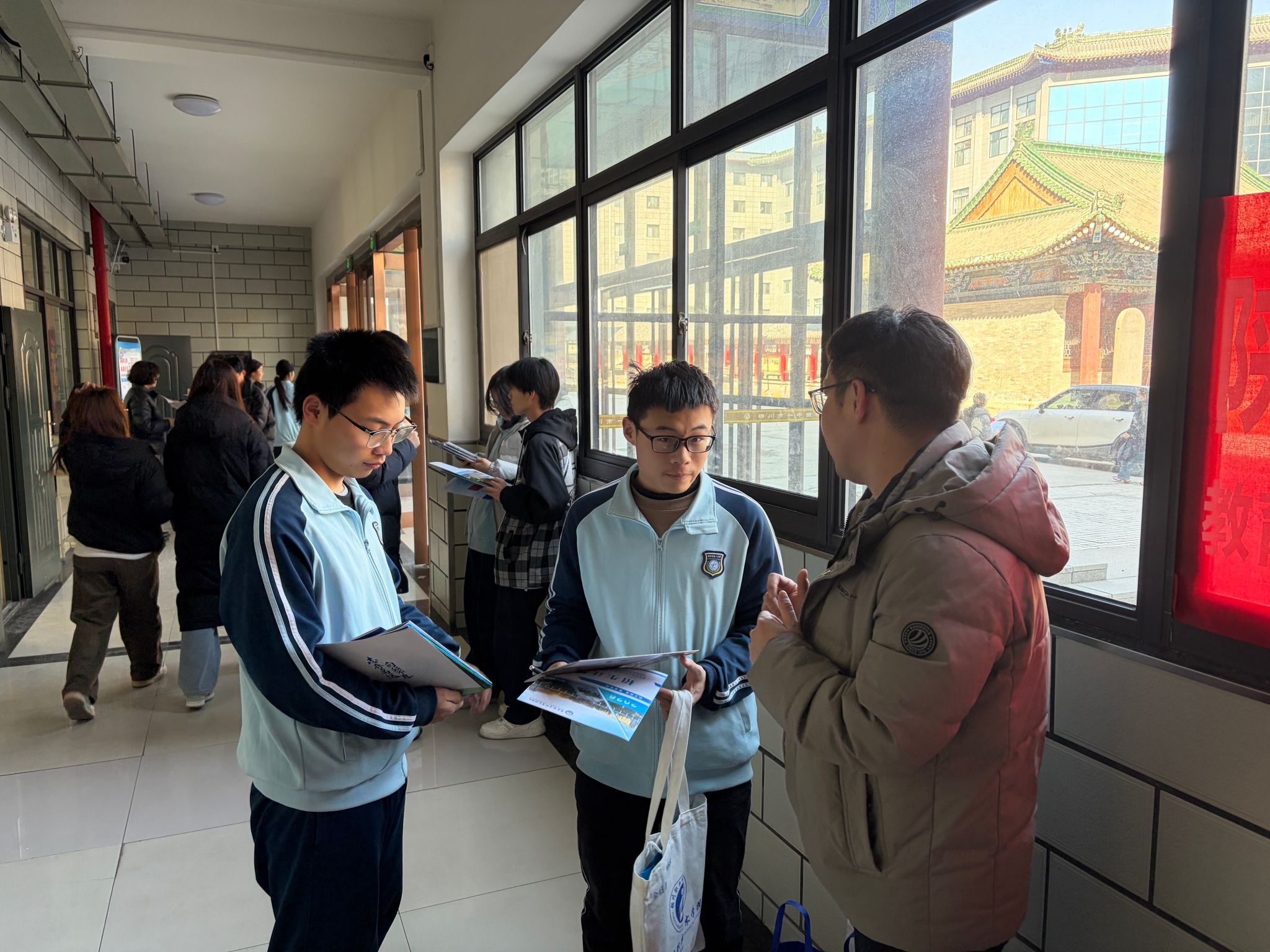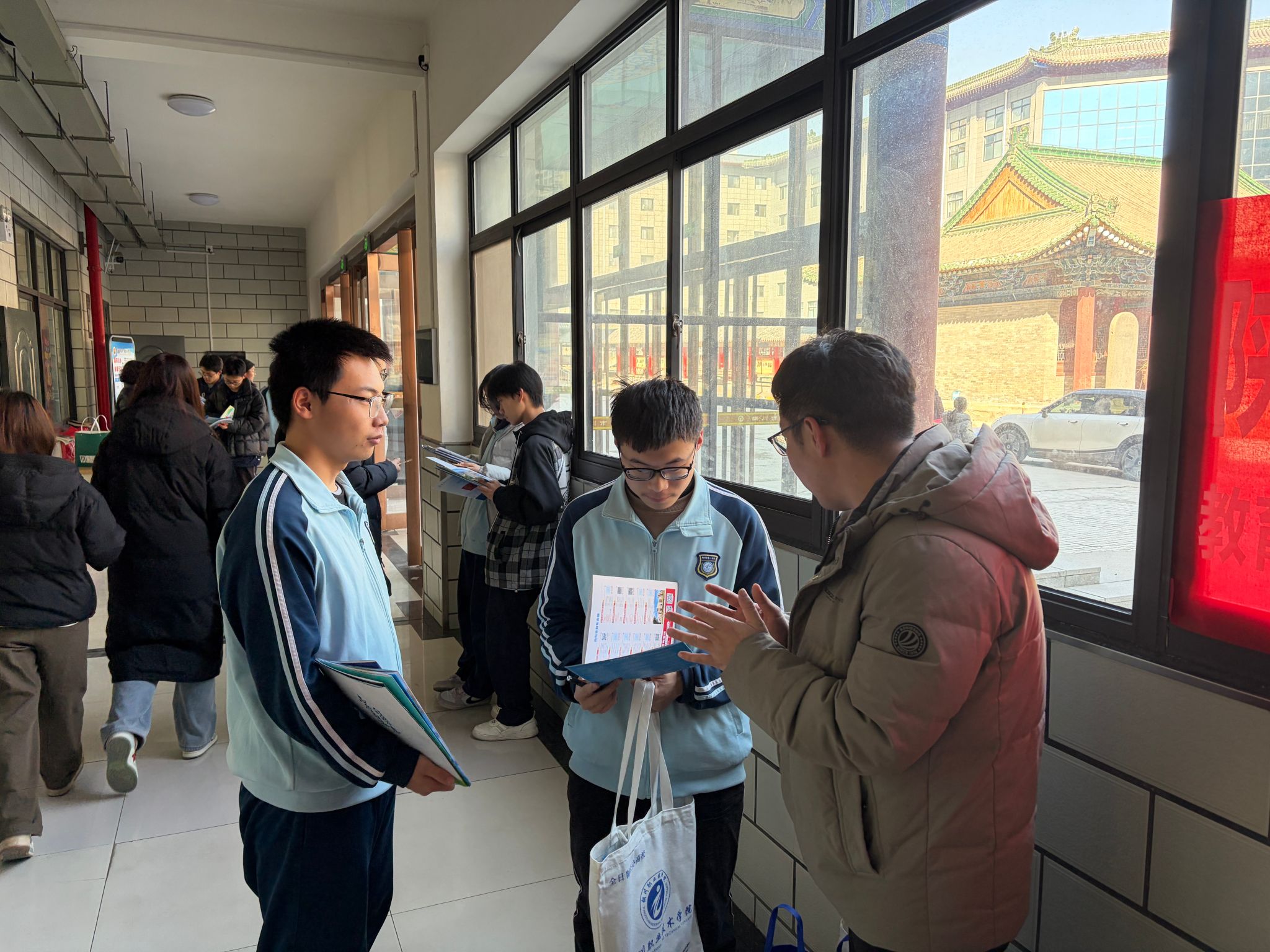 2月7日,学院党总支书记王琦、办公室副主任卜伟、教职工郭江涛3人在铜川一中北关校区和新校区开展招生宣传与对接交流。