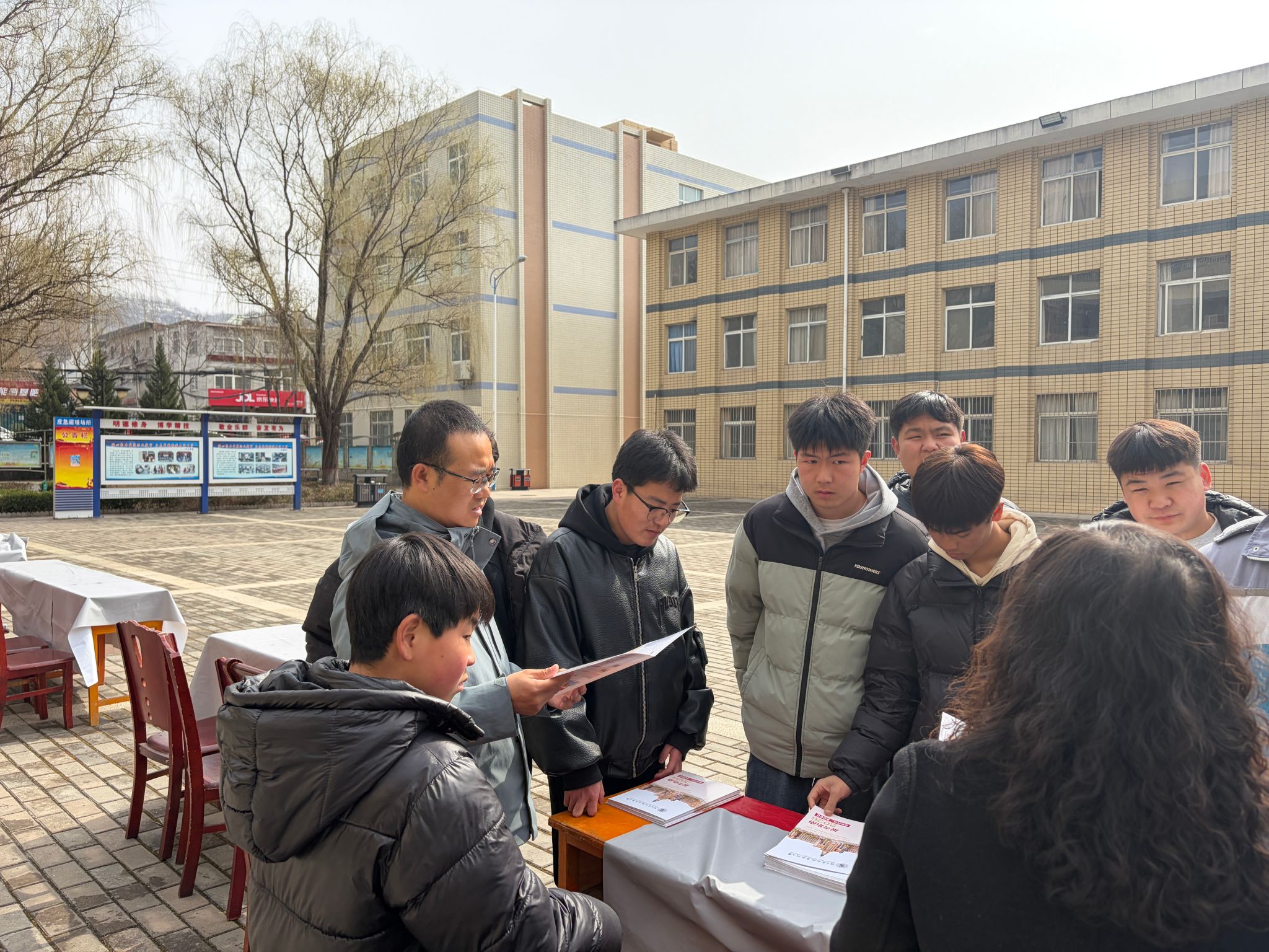 3月15日,建筑工程学院院长刘洁,纪委罗永轲,教职工郭江涛、鲁得文4人在旬邑县综合高中(职教中心)开展招生宣传与对接交流。